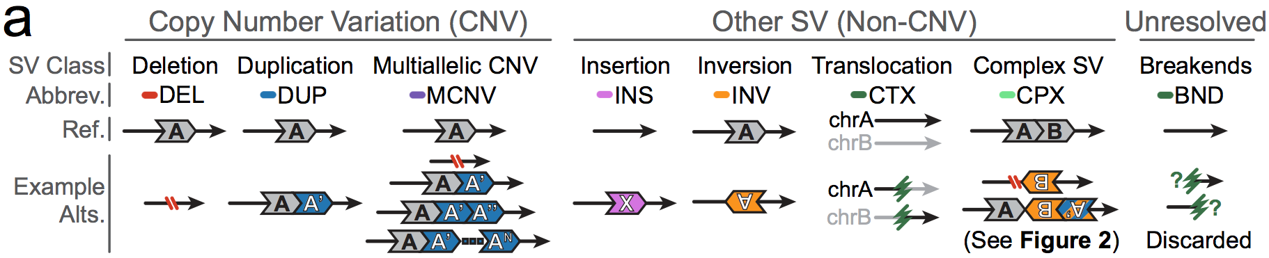 • Canonical SVs are rearrangements that involve a single distinct breakpoint signature and/or changes in copy number